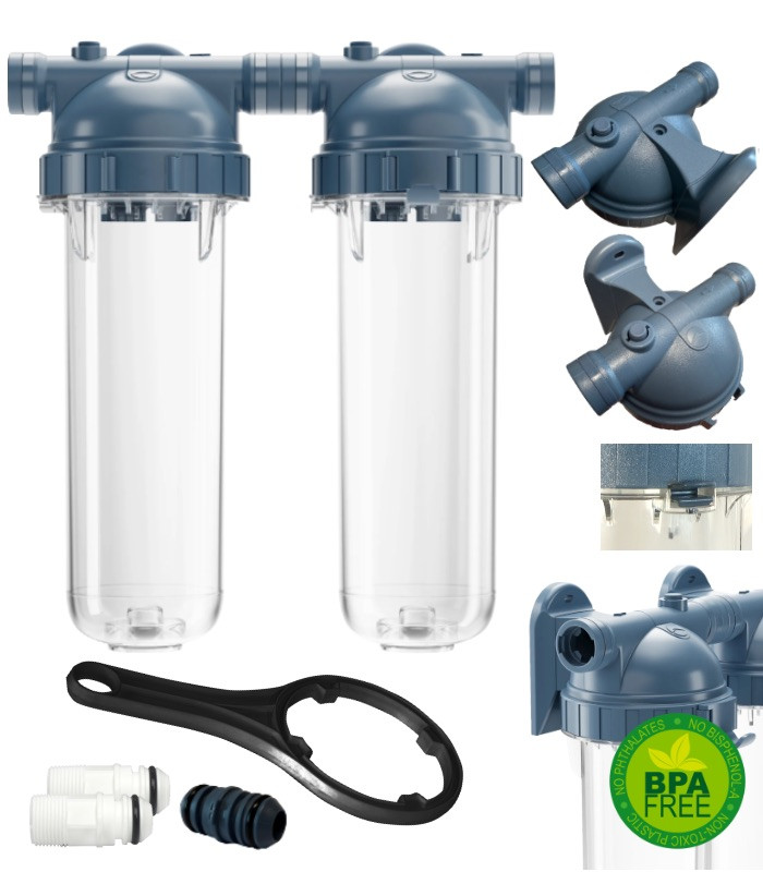 | Portafiltros modular sin BPA- Modelo desnudo sin conectores Puede utilizarse con cartuchos estándar de 10 pulgadas: